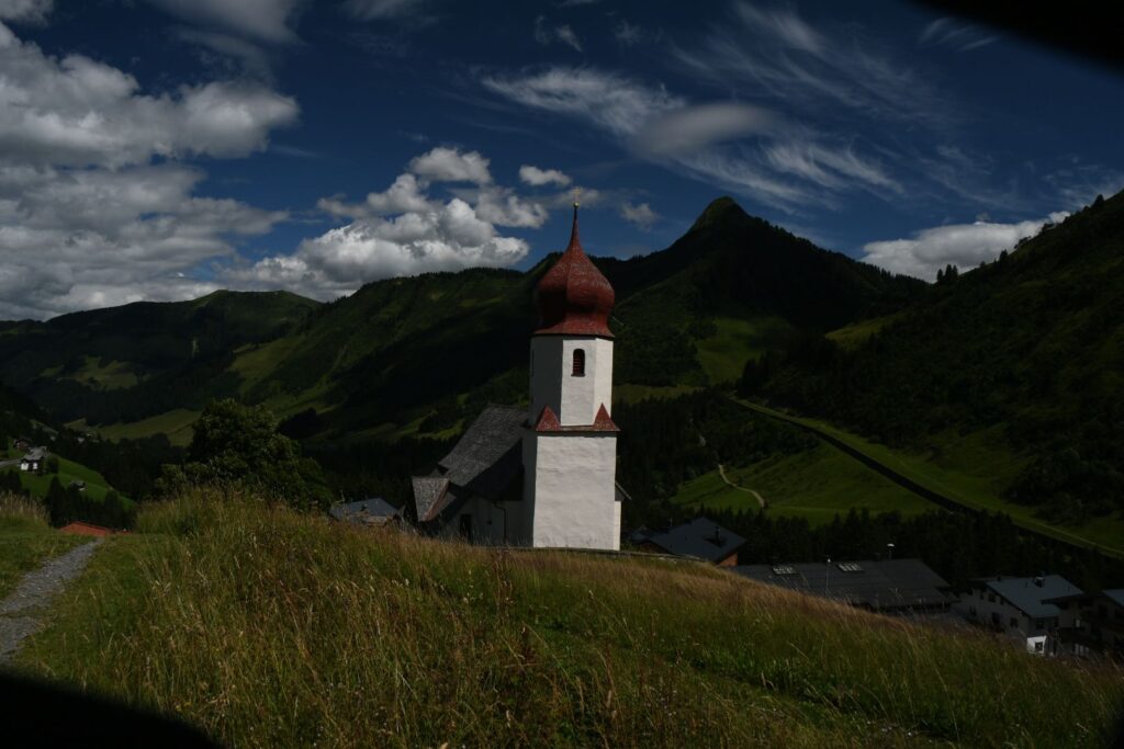 Am Ziel, die Kirche St Nikolaus in Damüls